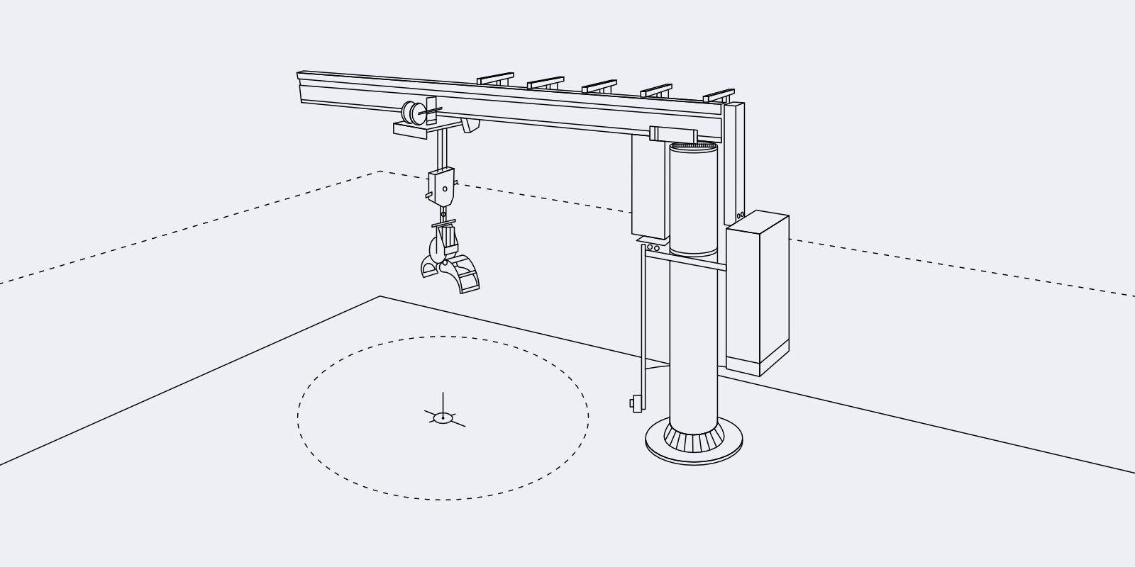 The Virtual Collision Indicator projects a horizontal line onto objects and walls within the working area, reflecting the current height of the grapple or hook.