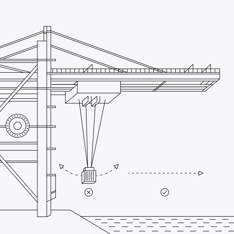 Our advanced Sway Control system enhances crane safety and efficiency by actively minimizing both linear and rotational sway of the load. The system dynamically compensates for unwanted swinging motions during crane movement, ensuring stable and precise load handling.